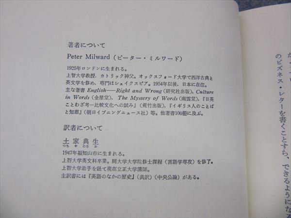 著者はピーター・ミルワード先生、訳者は土家典生先生になります。
