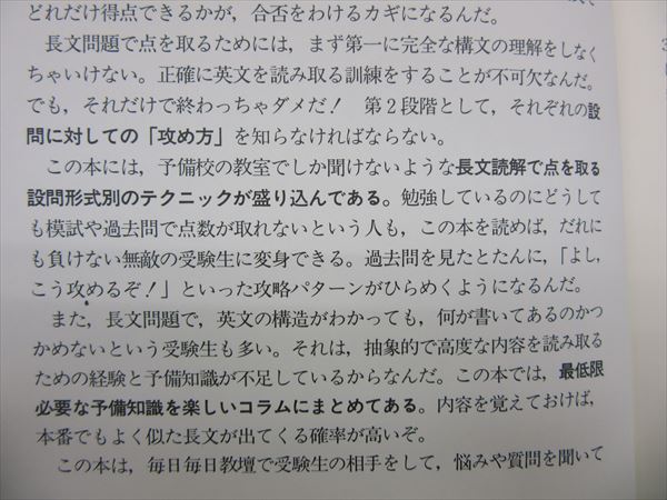 画像をご覧いただければ、伝わりますでしょうか?先生の特徴的な設問形式別の点を取るテクニックや長文読解の予備知識が満載。